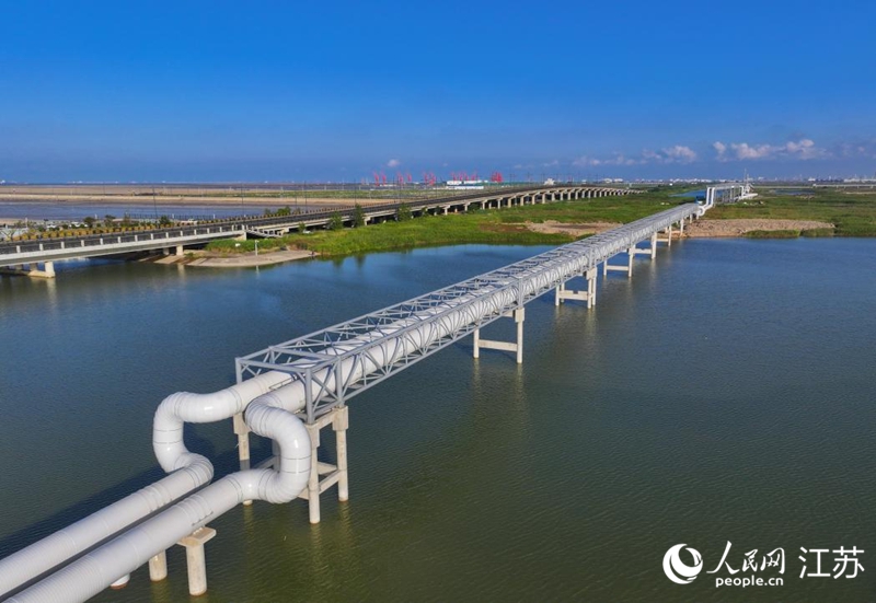 能源供给的绿色升级同样关键。这里有全国首个工业用途核能供汽项目江苏核电“和气一号”。一条23.36公里长的白色管道如同“能源大动脉”,将田湾核电基地转化的“零碳蒸汽”源源不断地输往徐圩新区企业。